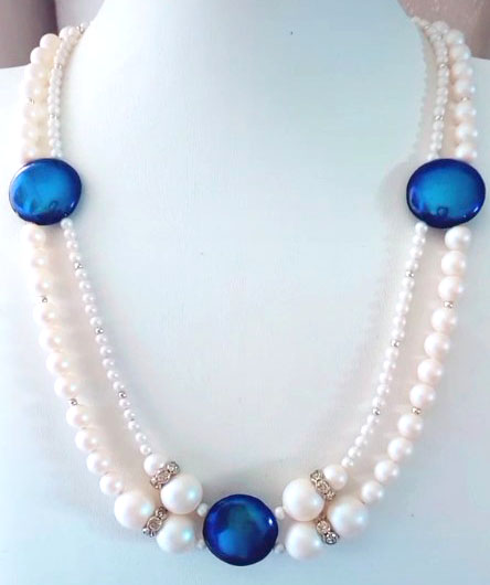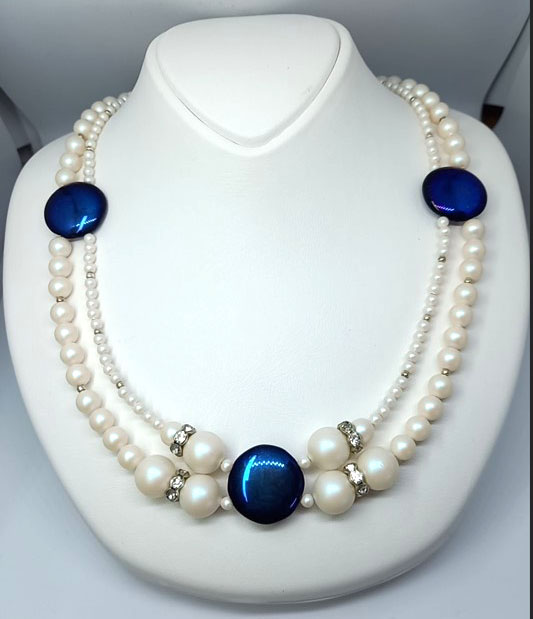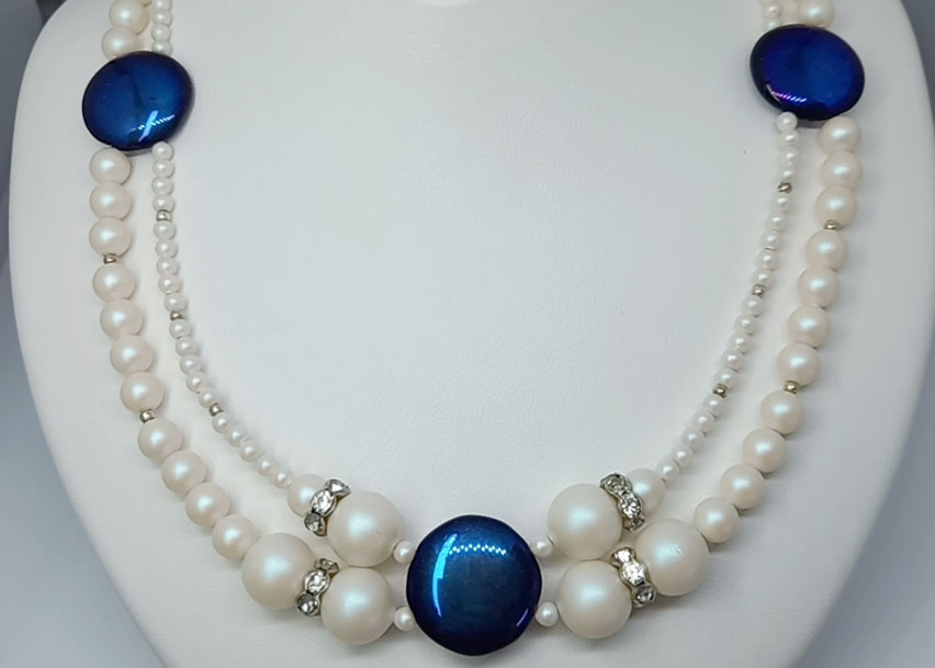 Μοναδικό Χειροποίητο κόσμημα – Κολιέ με πέρλες Swarovski (pearlescent white crystall & cabochon jet Azuro & strass)